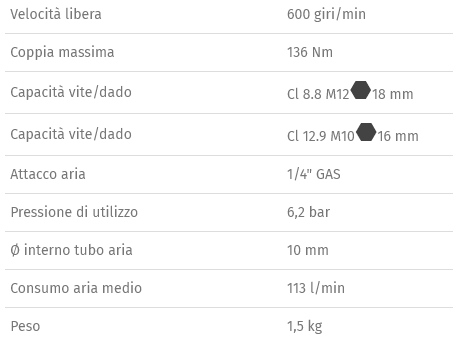 Caratteristiche: • Meccanismo impulsivo tipo "rocking dog" con doppio martello • Facilità di serraggio: il sistema a massa battente elimina la torsione del polso a fine avvitatura e riduce i tempi operativi • Compatto e potente: la coppia massima raggiungibile è notevolmente superiore rispetto a quella ottenibile con un cricchetto tradizionale • Impugnatura ergonomica in gomma