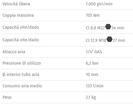 Caratteristiche: • Meccanismo impulsivo "Pin Clutch" • Impugnatura in gomma • Comando d'inversione a leva • Tre differenti livelli di potenza in avvitamento • Scarico dell'aria attraverso l'impugnatura