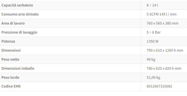 PER LAVAGGI CON ACQUA CALDA FINO A 60° C, CON PISTOLA PNEUMATICA AD EFFETTO VENTURI.