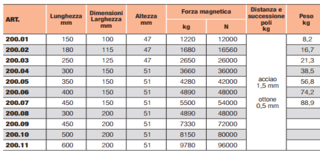 FORZA POLARE VERTICALE NOMINALE 80 N/cm 2