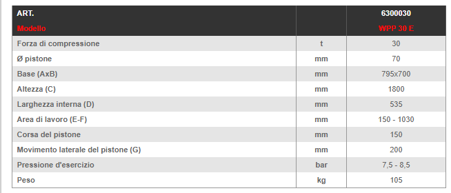 · Utilizzo versatile in vari settori · L‘efficiente progettazione di questa serie permette un ottimo rapporto qualità-prezzo · La molla di ritorno integrata e di serie permette un maggiore spazio di lavoro · Metodo di lavoro sicuro: il pistone può essere fermato in qualsiasi posizione · Robusto telaio saldato e forato per regolare l‘altezza della tavola inferiore in ben 10 posizioni · Completa di manometro per controllo pressione · Avanzamento del pistone possibile sia con pompa idraulica manuale che pneumatica a pedale · Cilindro laterale scorrevole · Costruiti secondo direttive CE