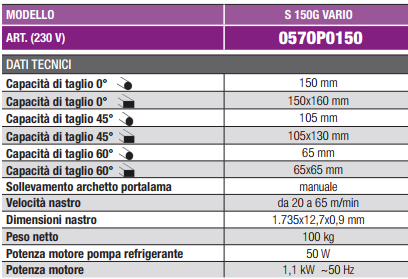 SEGATRICE A NASTRO con archetto orientabile e velocità di taglio a regolazione continua