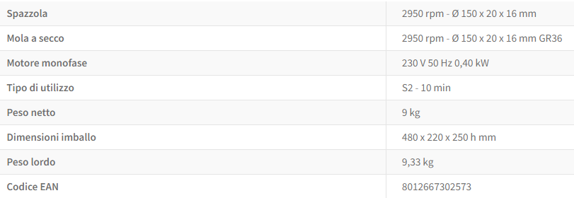 dotata di pulsante elettromagnetico, protezione trasparente della mola regolabile e carter in lamiera per la massima sicurezza. Struttura completamente in fusione di metallo.