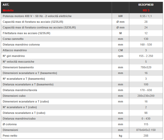 · Mandrino con cuscinetti a rulli conici · Precisione di rotazione concentrica ≤ 0,015 mm nella sede dell’attacco del mandrino portapunte · Ampia gamma di velocita da 155 -2.250 rpm grazie al motore con cambio meccanico/elettrico · Cubo dotato di scanalature a T disposte parallelamente · Motore autofrenante · Inversione di maschiatura manuale · Bloccaggi meccanici · Costruiti secondo direttive CE